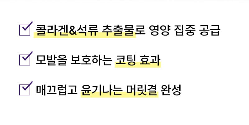 콜라겐 & 석류 추출물로 탄력있는 모발!